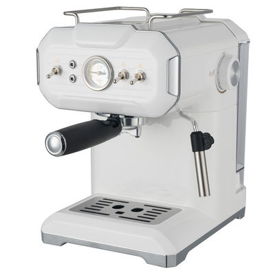 เครื่องกึ่งอัตโนมัตินี้มีแรงดันปั๊ม 19 บาร์ กำลังไฟ 1200W และแผงควบคุมแบบสัมผัสเดียวพร้อมไฟส่องสว่างสำหรับการชงที่ง่ายดาย โครงสร้าง PP/สแตนเลสพร้อมแทงค์น้ำแบบถอดได้ขนาด 1.8 ลิตรที่มองเห็นได้ชัดเจนช่วยให้ทนทานและตรวจสอบได้ง่าย ประกอบด้วยเครื่องตีฟองนมด้วยไอน้ำ แผ่นทำความร้อนด้านบน และระบบน้ำร้อนสำหรับทำความสะอาดถ้วย เข้ากันได้กับผงกาแฟหรือแคปซูล เครื่องชงเอสเปรสโซนี้มีฟังก์ชันการตั้งโปรแกรม เครื่องบดแบบปรับได้ และฟังก์ชันทำความสะอาดตัวเอง มีให้เลือก 5 ภาษาในการใช้งาน พร้อมใบรับรอง CE/EMC/LVD/CB/LFGB/RoHS